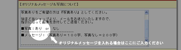 その場合は、各商品ページ内の項目選択肢にて『メッセージカードにお写真有り』の項目をチェックしてください。